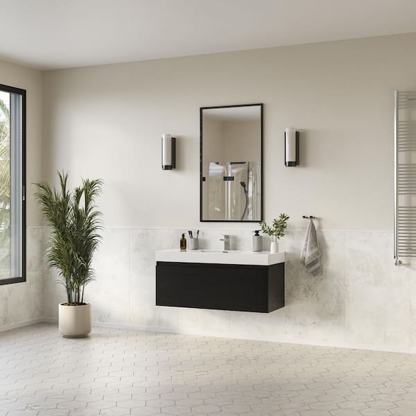 Mezzo 48 in. Modern Wall Hung Bath Vanity in Black with Vanity Top in White with White Basin