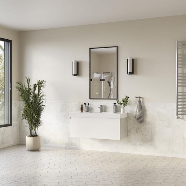 Mezzo 48 in. Modern Wall Hung Bath Vanity in White with Vanity Top in White with White Basin