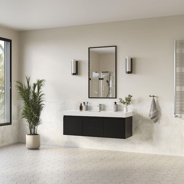 Mezzo 60 in. Modern Wall Hung Bath Vanity in Black with Vanity Top in White with White Basin