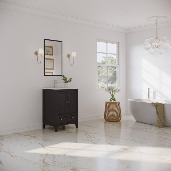 Oxford 24 in. Vanity in Espresso with Ceramic Vanity Top in White with White Basin and Mirror (Faucet Not Included)