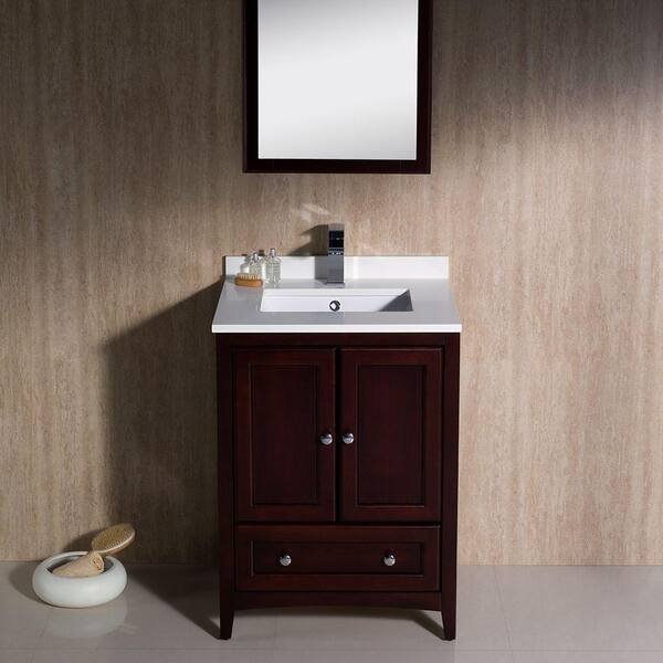 Oxford 24 in. Vanity in Mahogany with Ceramic Vanity Top in White with White Basin and Mirror
