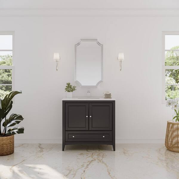 Oxford 36 in. Bath Vanity in Espresso with Quartz Stone Vanity Top in White with White Basin