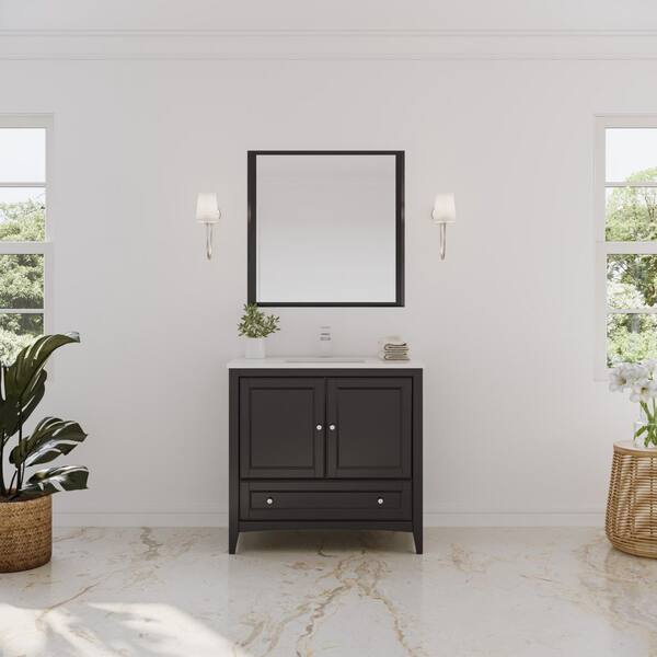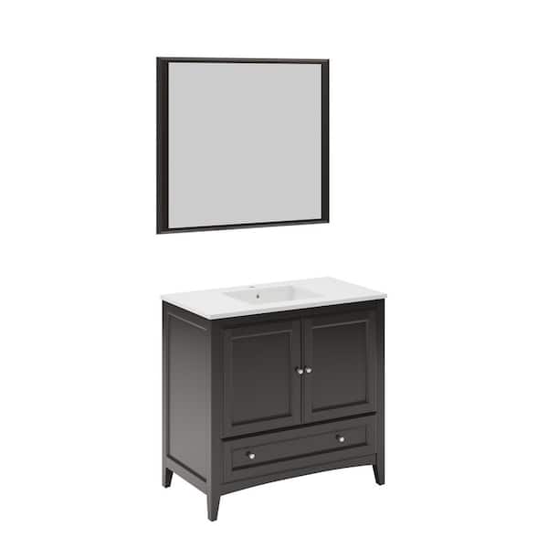 Oxford 36 in. Vanity in Espresso with Ceramic Vanity Top in White with White Basin and Mirror (Faucet Not Included)