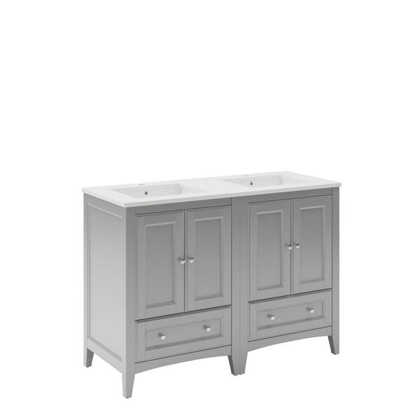 Oxford 48 in. Traditional Double Bath Vanity in Gray with Quartz Stone Vanity Top in White with White Basins