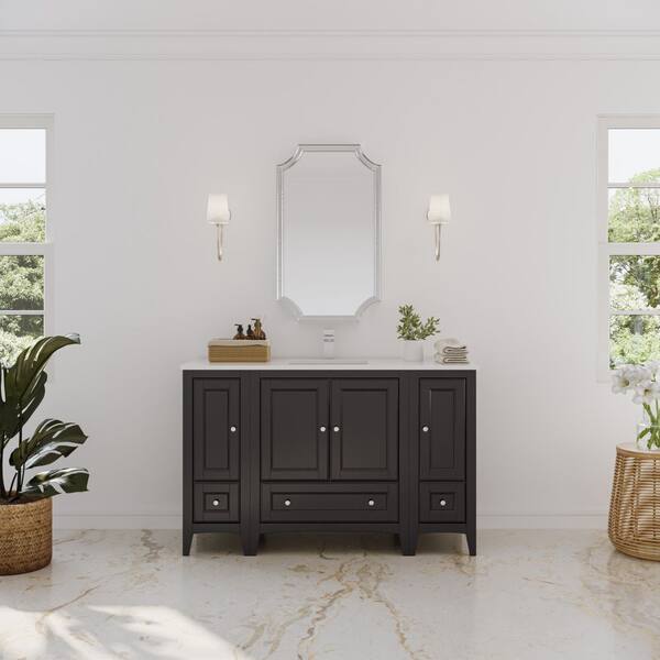 Oxford 54 in. Bath Vanity in Espresso with Quartz Stone Vanity Top in White with White Basin