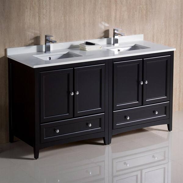 Oxford 60 in. Double Vanity in Espresso with Quartz Stone Vanity Top in White with White Basins