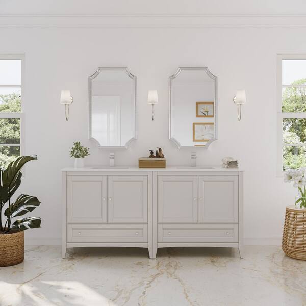 Oxford 72 in. Double Vanity in Antique White with Quartz Stone Vanity Top in White with White Basins