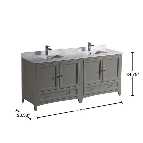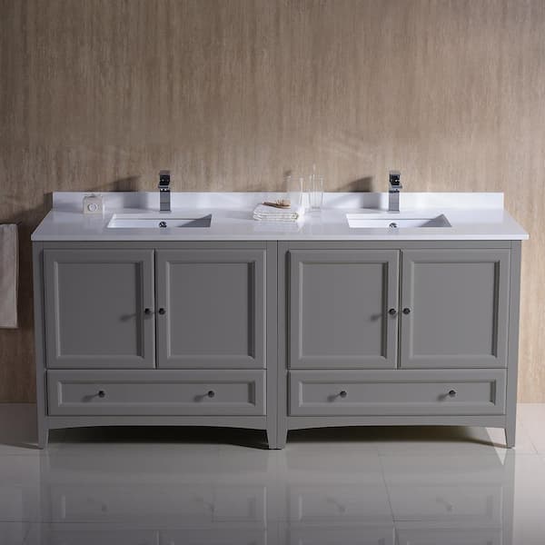 Oxford 72 in. Traditional Double Bath Vanity in Gray with Quartz Stone Vanity Top in White with White Basins