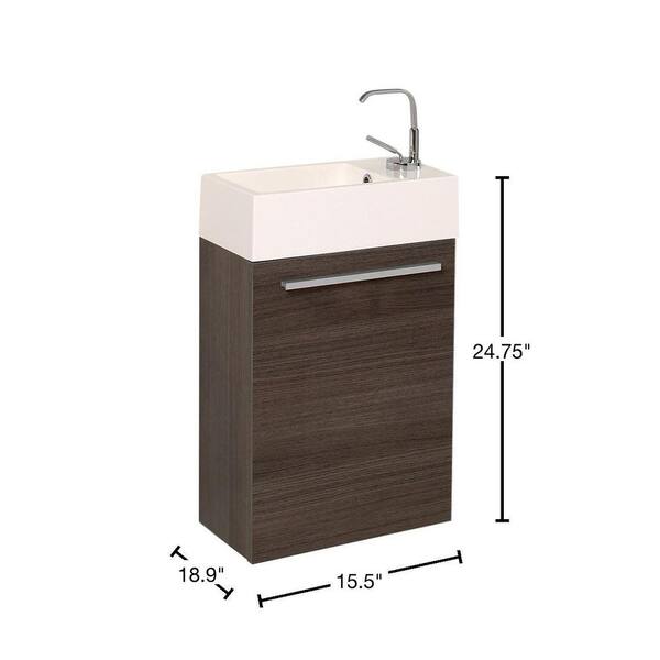 Pulito 16 in. Modern Wall Hung Bath Vanity in Gray Oak with Vanity Top in White with White Basin