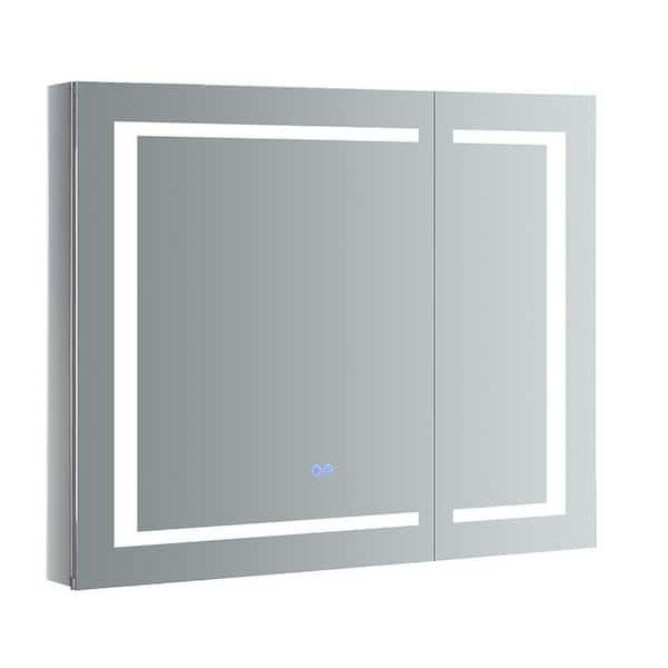 Spazio 36 in. W x 30 in. H Recessed or Surface Mount Medicine Cabinet with LED Lighting and Mirror Defogger