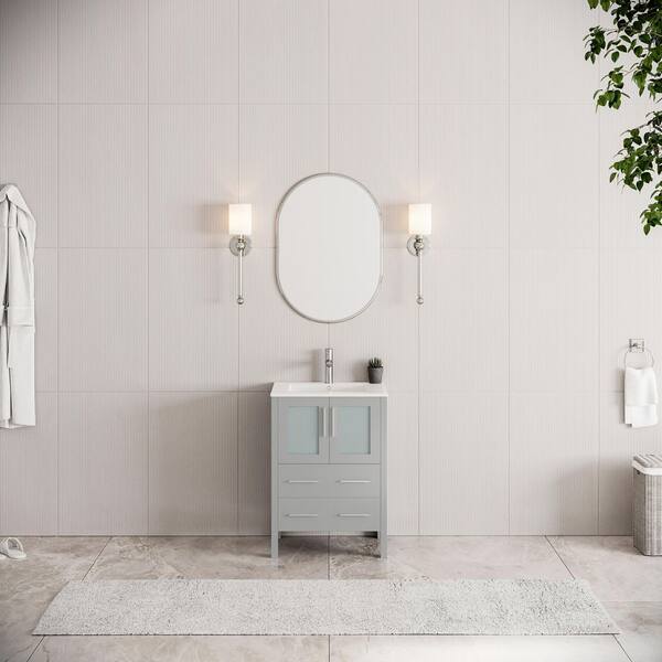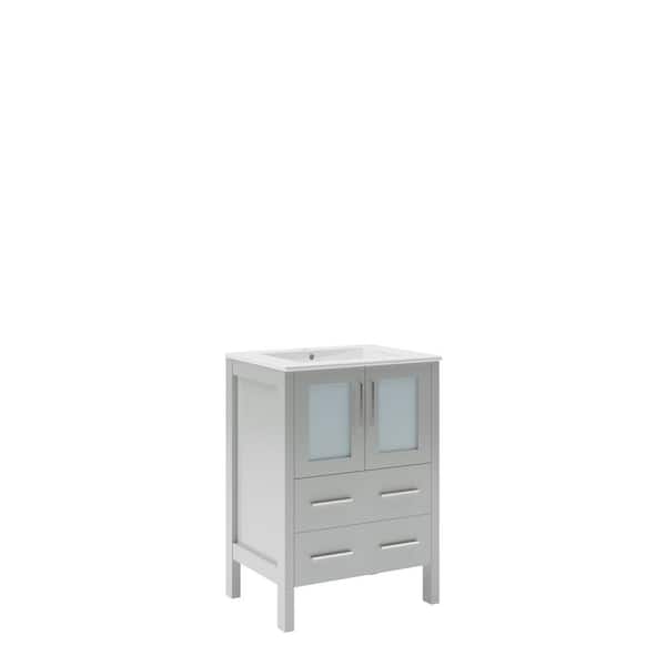 Torino 24 in. Bath Vanity in Gray with Ceramic Vanity Top in White with White Basin
