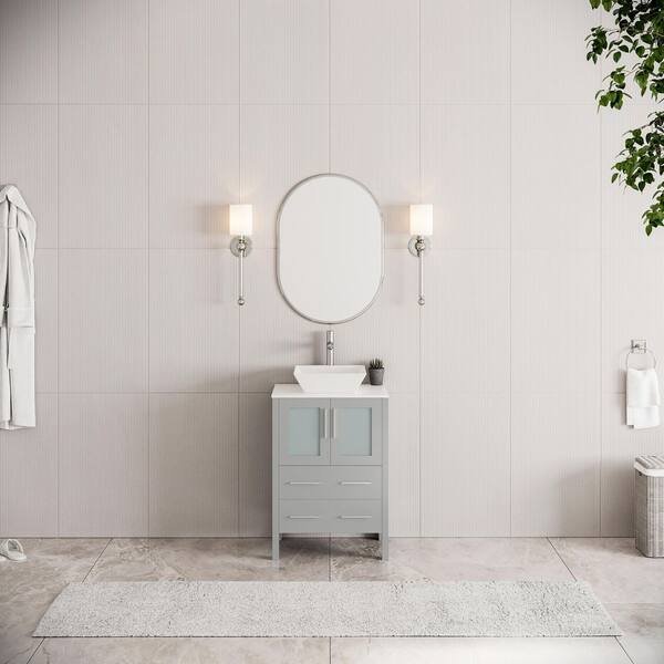 Torino 24 in. Bath Vanity in Gray with Glass Stone Vanity Top in White with White Vessel Sink