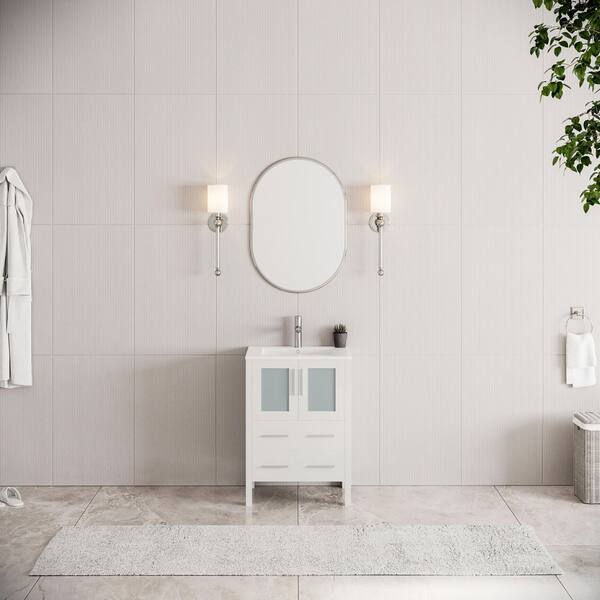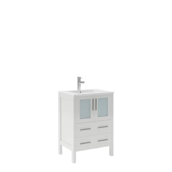 Torino 24 in. Bath Vanity in White with Ceramic Vanity Top in White with White Basin