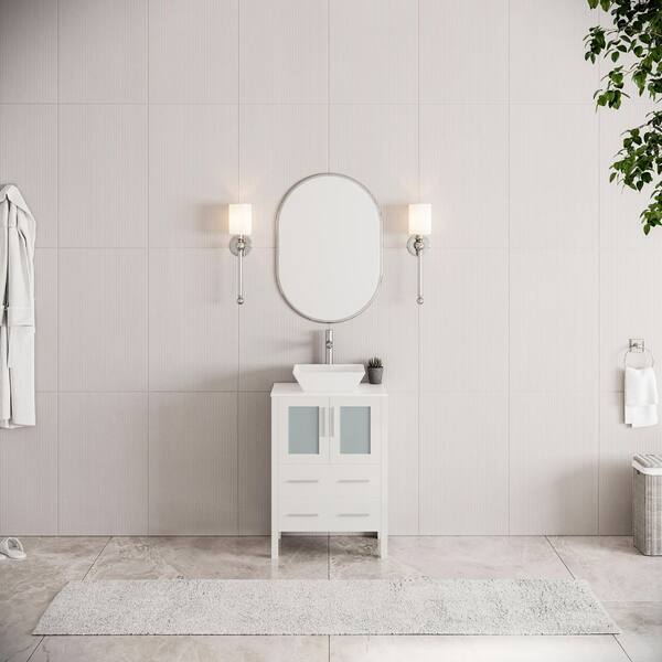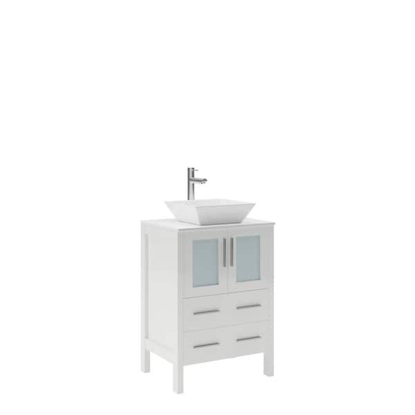 Torino 24 in. Bath Vanity in White with Glass Stone Vanity Top in White with White Basin