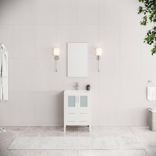 Torino 24 in. Vanity in White with Ceramic Vanity Top in White with White Basin and Mirror (Faucet Not Included)