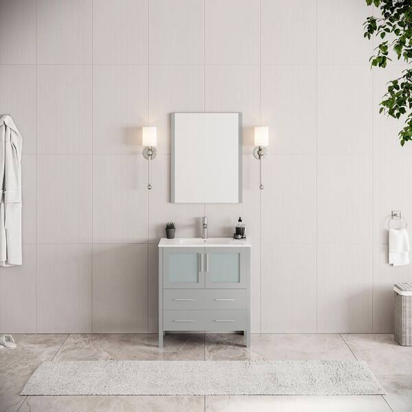 Torino 30 in. Bath Vanity in Gray with Ceramic Vanity Top in White with White Basin and Mirror (Faucet Not Included)