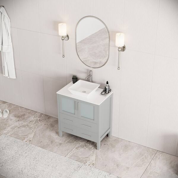 Torino 30 in. Bath Vanity in Gray with Glass Stone Vanity Top in White with White Vessel Sink