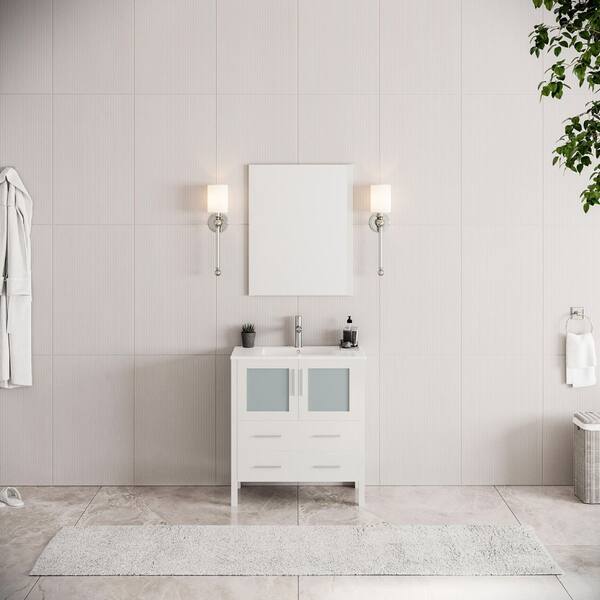 Torino 30 in. Vanity in White with Ceramic Vanity Top in White with White Basin and Mirror (Faucet Not Included)