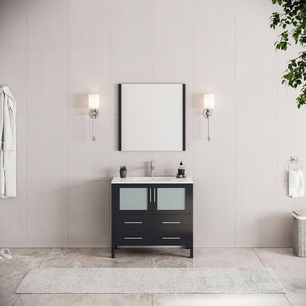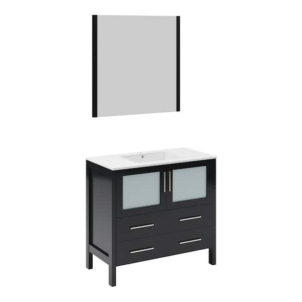 Torino 36 in. Vanity in Espresso with Ceramic Vanity Top in White with White Basin and Mirror (Faucet Not Included)