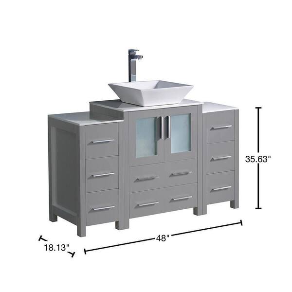 Torino 48 in. Bath Vanity in Gray with Glass Stone Vanity Top in White with White Vessel Sink, Side Cabinets