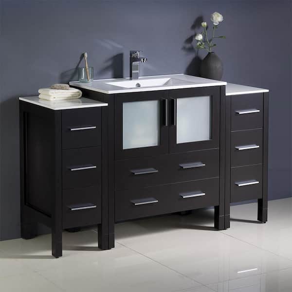 Torino 54 in. Bath Vanity in Espresso with Ceramic Vanity Top in White with White Basin