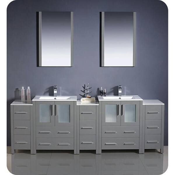 Torino 83.50 in. W Modern Double Bath Vanity Only in Gray with Side and Middle Cabinet