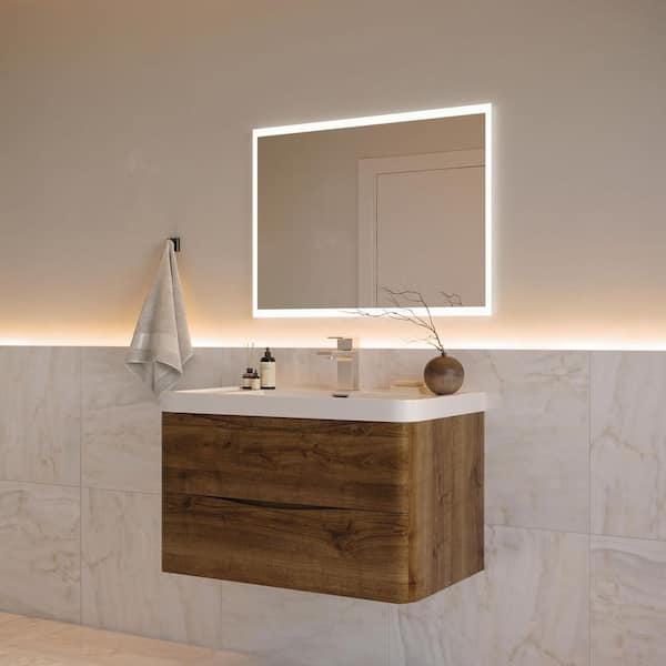 Tuscany 32 in. Modern Wall Hung Vanity in Rosewood with Vanity Top in White with White Basin