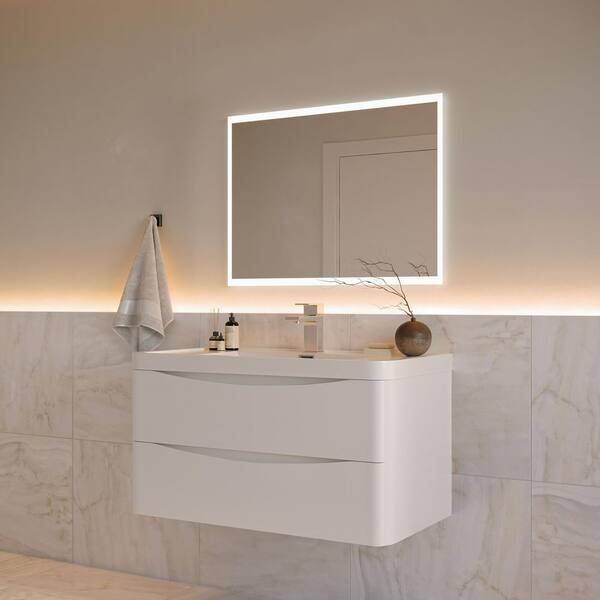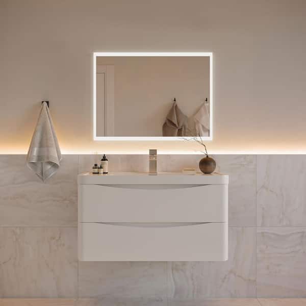 Tuscany 36 in. Modern Wall Hung Vanity in Glossy White with Vanity Top in White with White Basin