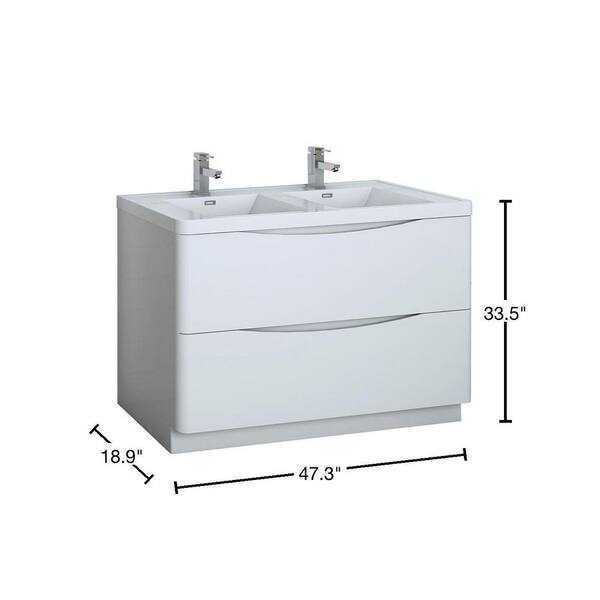 Tuscany 48 in. Modern Double Bath Vanity in Glossy White with Vanity Top in White with White Basin