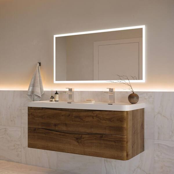 Tuscany 48 in. Modern Double Wall Hung Vanity in Rosewood with Vanity Top in White with White Basins