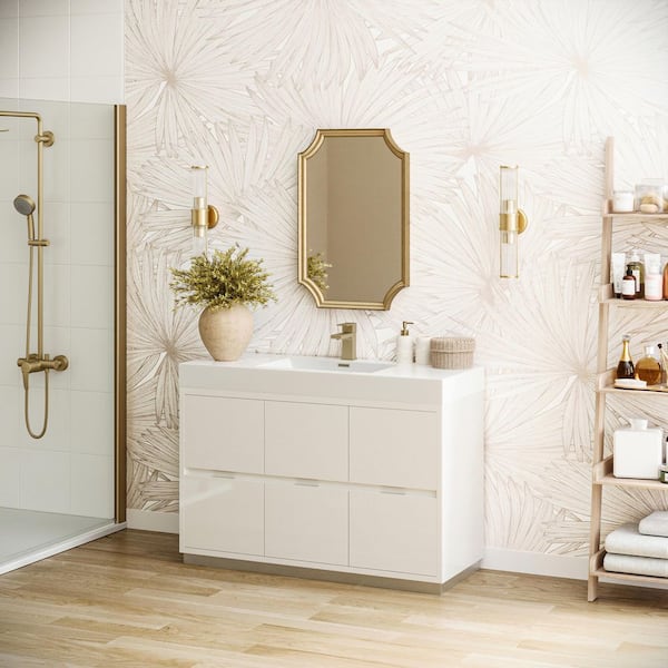 Valencia 48 in. W Bathroom Vanity in Glossy White with Acrylic Vanity Top in White