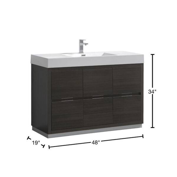 Valencia 48 in. W Bathroom Vanity in Gray Oak with Acrylic Vanity Top in White