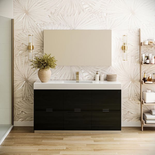 Valencia 60 in. W Vanity in Dark Slate Gray with Acrylic Vanity Top in White with White Basin and Medicine Cabinet