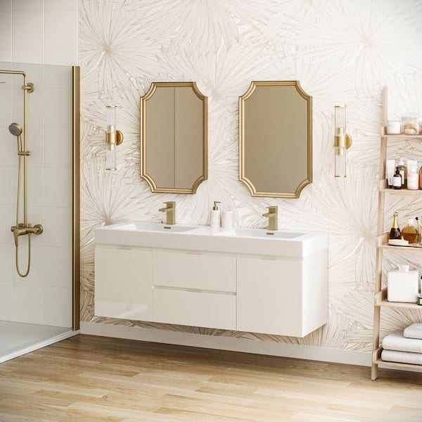 Valencia 60 in. W Wall Hung Bathroom Vanity in Glossy White with Double Acrylic Vanity Top in White