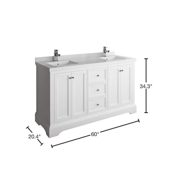 • Fresca Windsor 60 in. Matte Dbl Sink Cabinet w/Top & Sinks