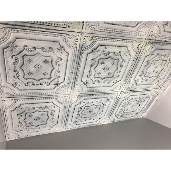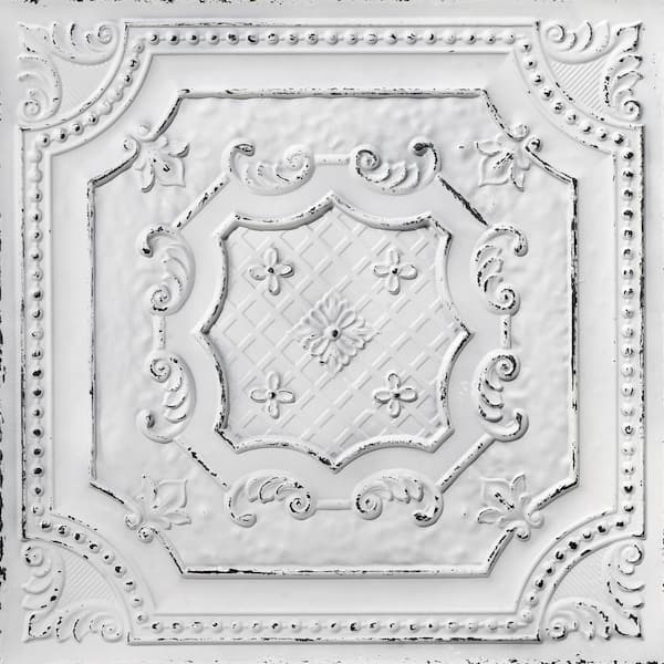 Elizabethan Shield 2 ft. x 2 ft. Glue Up PVC Ceiling Tile in Old Black White
