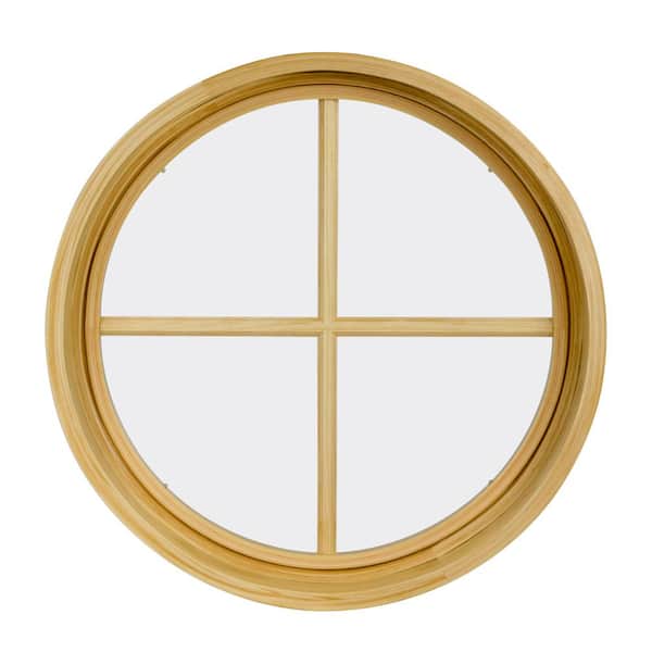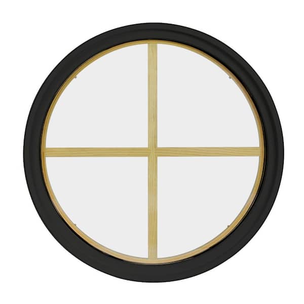 30 in. x 30 in. Round Bronze 4-9/16 in. Jamb 2-1/4 in. Interior Trim 4-Lite Grille Geometric Aluminum Clad Wood Window