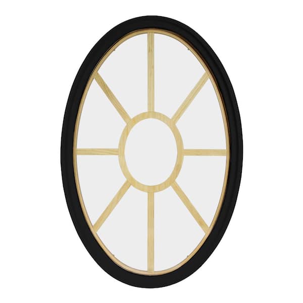 30 in. x 48 in. Oval Black 4-9/16 in. Jamb 2-1/4 in. Interior Trim 9-Lite Grille Geometric Aluminum Clad Wood Window