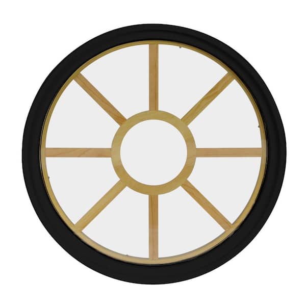 36 in. x 36 in. Round Black 4-9/16 in. Jamb 3-1/2 in. Interior Trim 9-Lite Grille Geometric Aluminum Clad Wood Window