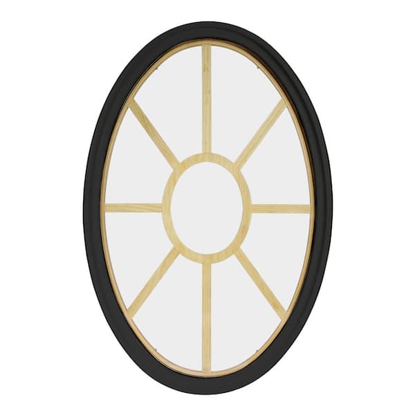 36 in. x 60 in. Oval Bronze 4-9/16 in. Jamb 9-Lite Grille Geometric Aluminum Clad Wood Window