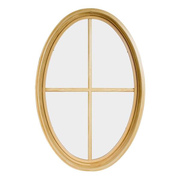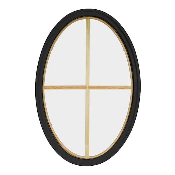 36 in. x 60 in. Oval Bronze 6-9/16 in. Jamb 4-Lite Grille Geometric Aluminum Clad Wood Window