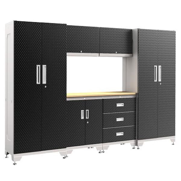 72.5 in. H x 107 in. W x 18 in. D 22-Gauge Steel Garage Storage Cabinet Set with Wooden Top in Black (7-Piece)