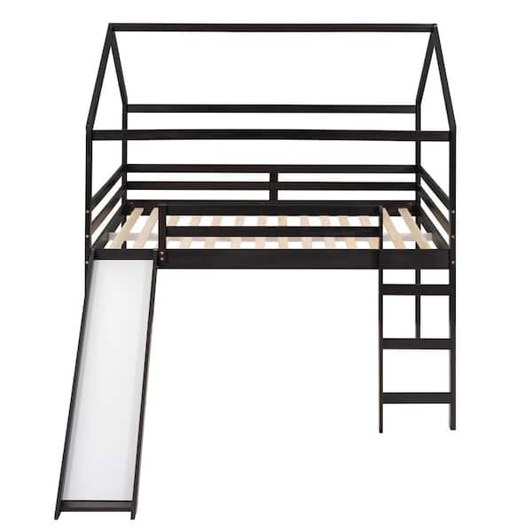 Full Size Brown Wooden Loft Beds with Slide and Ladder, House Loft Bed Frame for Kids Girls/Boys, No Box Spring Required