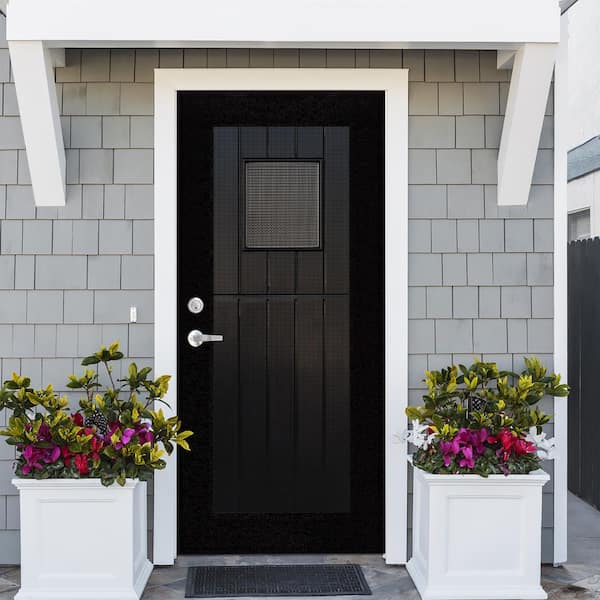 Full View 30 in. x 80 in. Left-Hand/Outswing Black Aluminum Security Door with Meshtec Screen
