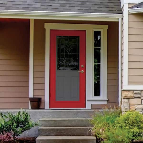 Full View 30 in. x 80 in. Right-Hand/Outswing Red Aluminum Security Door with Meshtec Screen