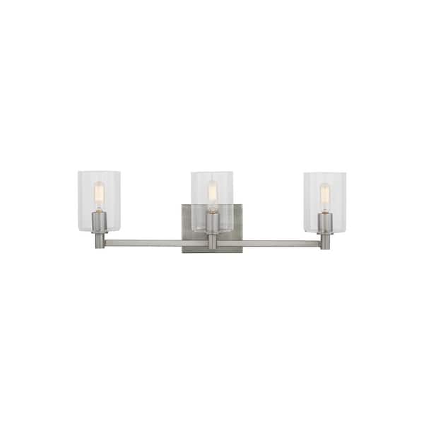 Fullton Modern 24.625 in. 3-Light Indoor Dimmable Brushed Nickel Bath Vanity Light with Clear Glass Shades