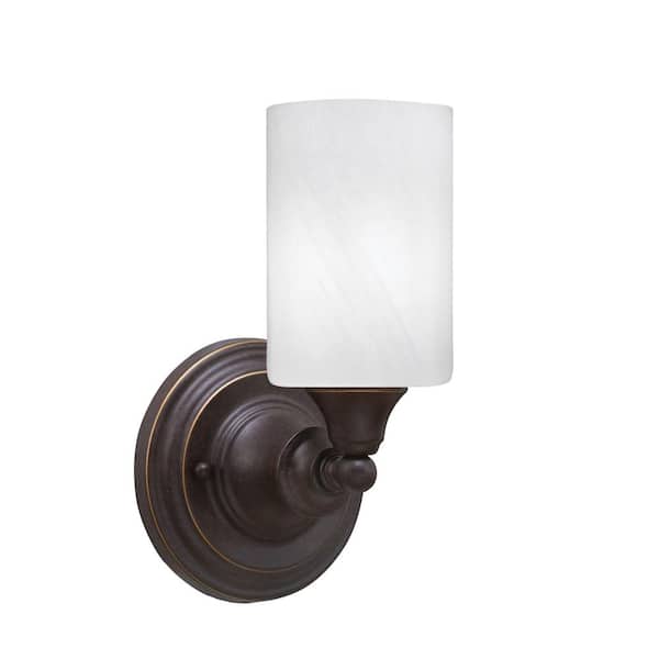 Fulton 1-Light Dark Granite Wall Sconce, 4 in. White Marble Glass