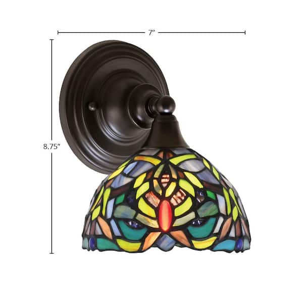 Fulton 1-Light Espresso Wall Sconce, 7 in. Kaleidoscope Art Glass