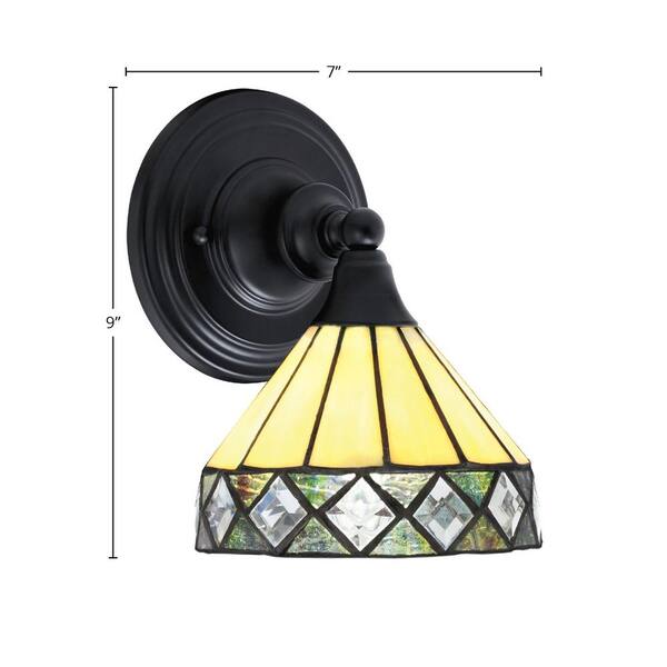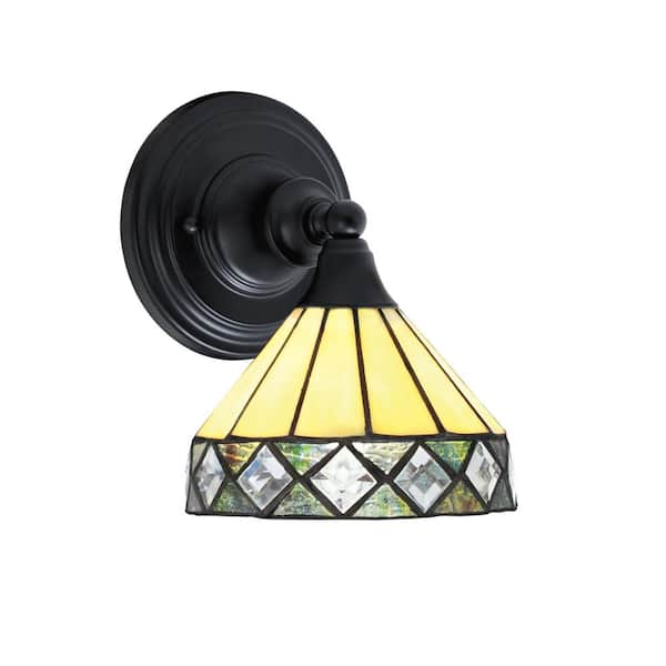 Fulton 1-Light Matte Black Wall Sconce, 7 in. Diamond Peak Art Glass