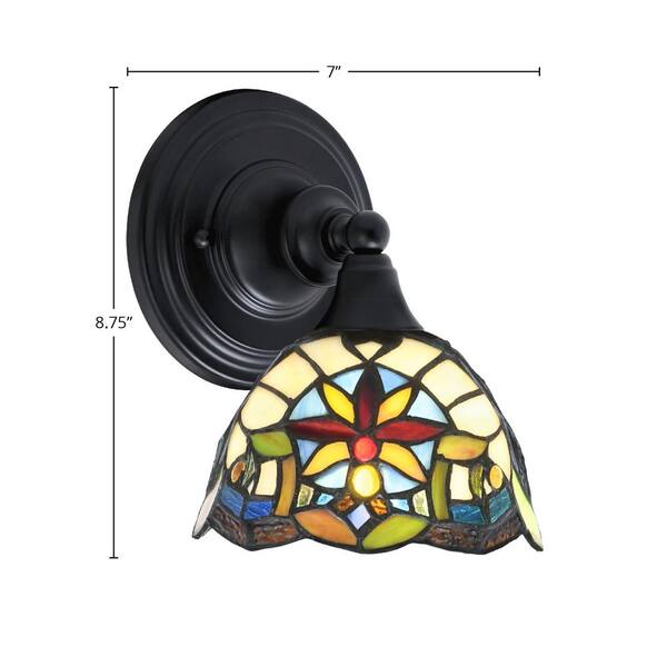 Fulton 1-Light Matte Black Wall Sconce, 7 in. Earth Star Art Glass